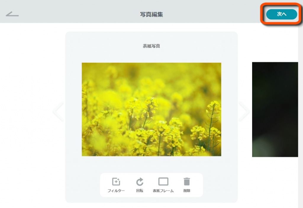 写真編集を完了する場合は右上の「次へ」をクリックします。